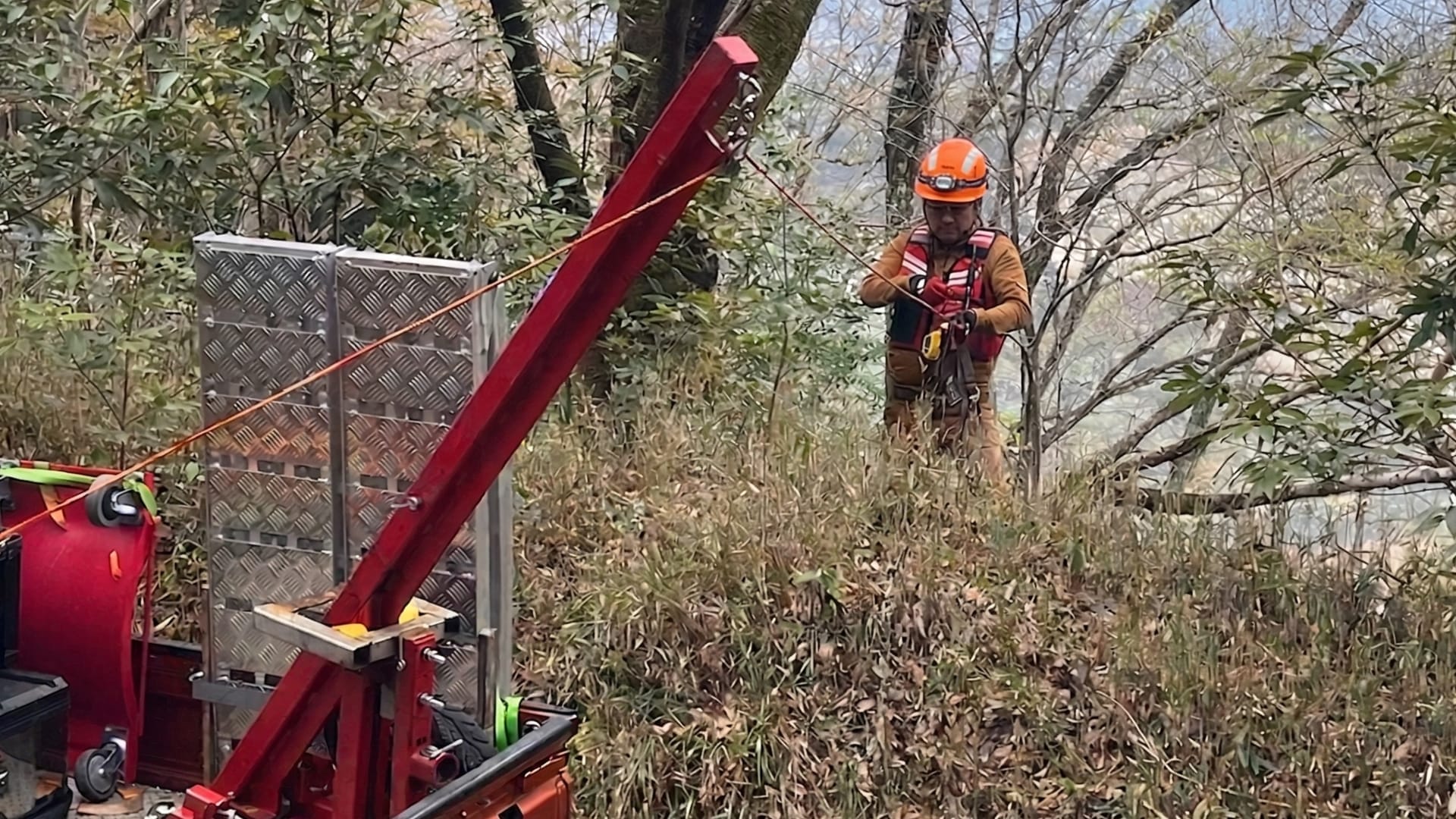クレーンが入れない狭い場所でも、従来の1/3程度の時間で救助可能です。林道転落・滑落バイクの引き上げ、水没車両の回収、車体分離した事故車の搬送まで、他社が「対応できない」と断る現場にも駆けつけます。